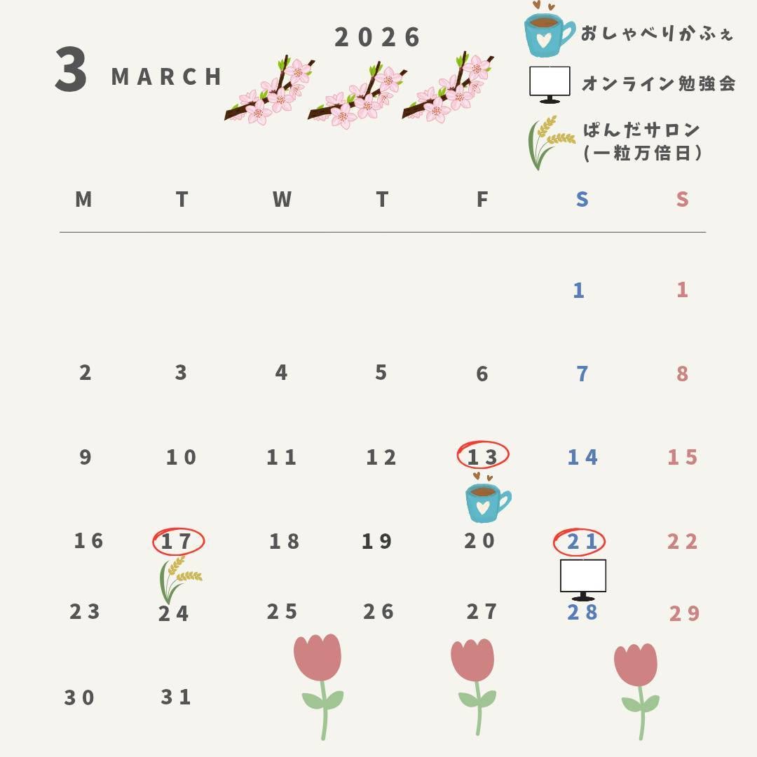 おしゃべりかふぇ、ぱんだサロン、オンライン勉強会を通して、共感と理解をもって話を聴く傾聴活動や癒しと学びの場所作りを行っています。