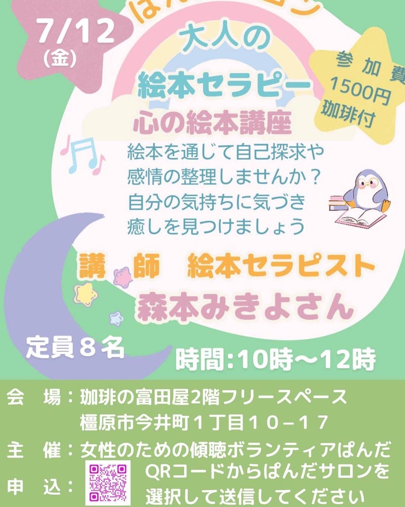 絵本セラピーの奥深さと役割を講師と共有することで参加される皆さんに、おいしい珈琲と共に、気づきと癒しの楽しい時間をお過ごしいただきたいと思います